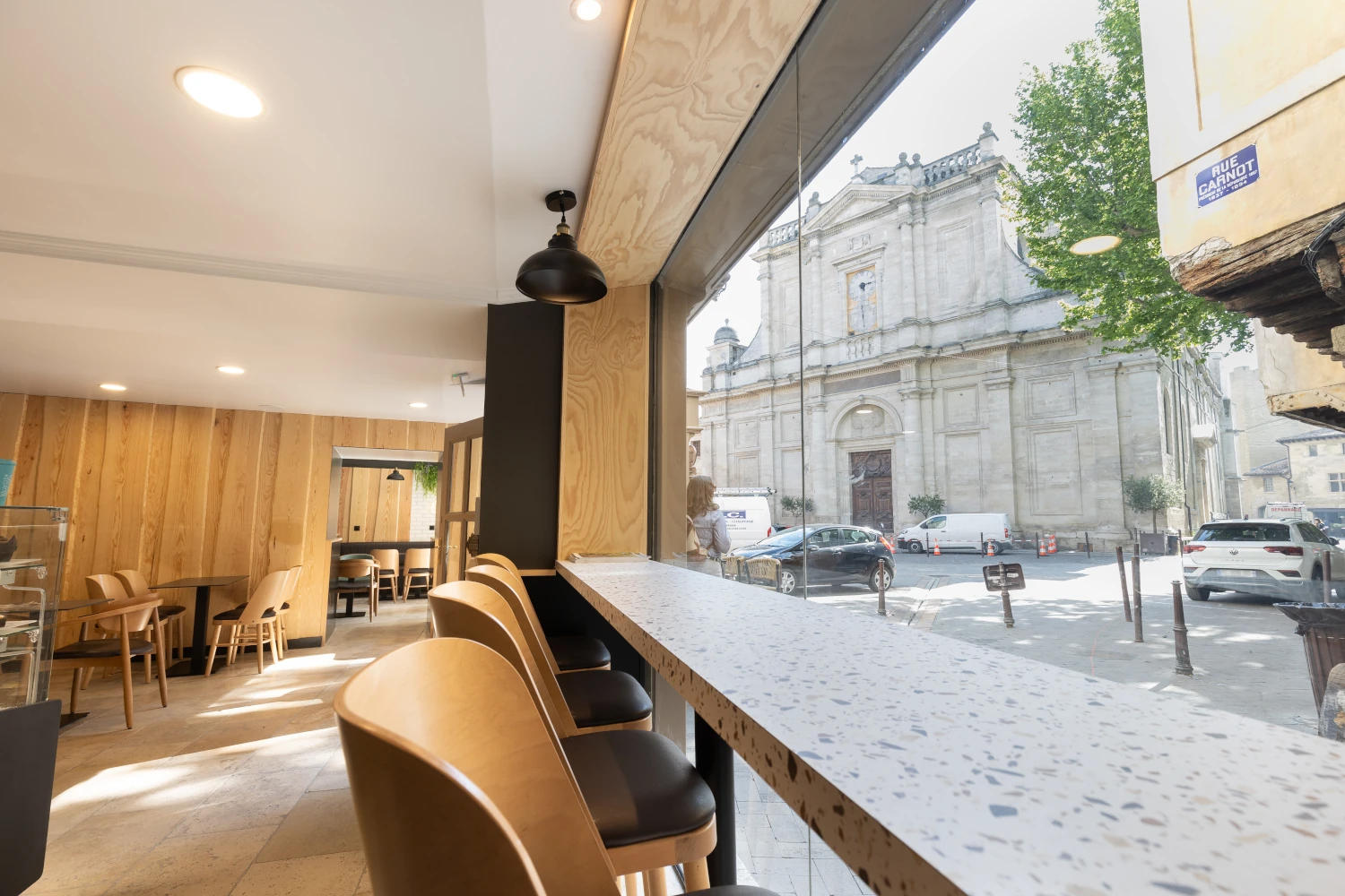 French Coffee Shop: warm and relaxed atmosphere. Coffee, breakfast, lunch, snack at any time. Customizable drinks (vegetable milks), gourmet snacks.