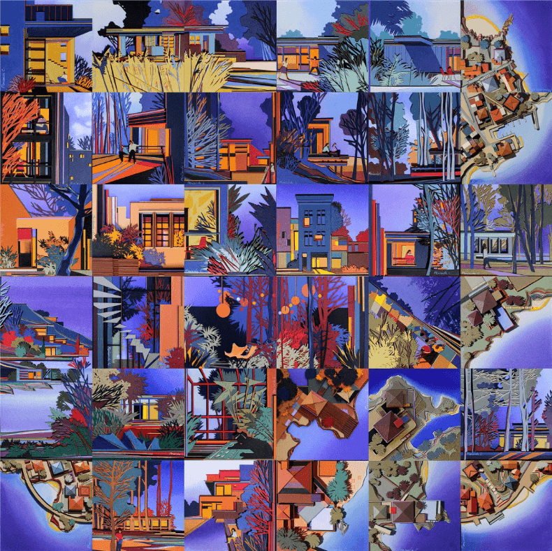 His work, greatly inspired by his profession as an architect, is a real mixture of colors and materials, where magnificent mosaics in which the real and imaginary intermingle are drawn over the course of his assemblies.